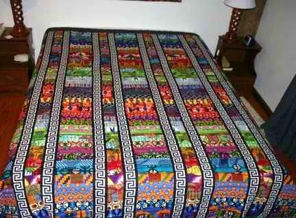 Nina Lanctot (Florence) is making a comforter for her first grandchild. It includes cloth from Congo, Cambodia and Costa Rica, reflecting family and church ties. It needs to be knotted by May 22-- Lily's first birthday!